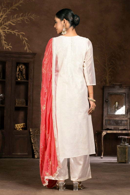 Peach Colour Unstitched Organza Pant Style Suit VSUS1161342