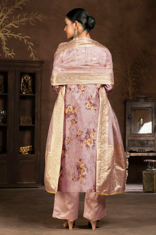 Rose Gold Colour Unstitched Organza Pant Style Suit VSUS1161255