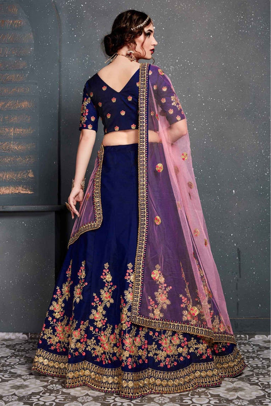 Blue Colour Taffeta and Satin Silk Lehenga Choli VSLC1010033