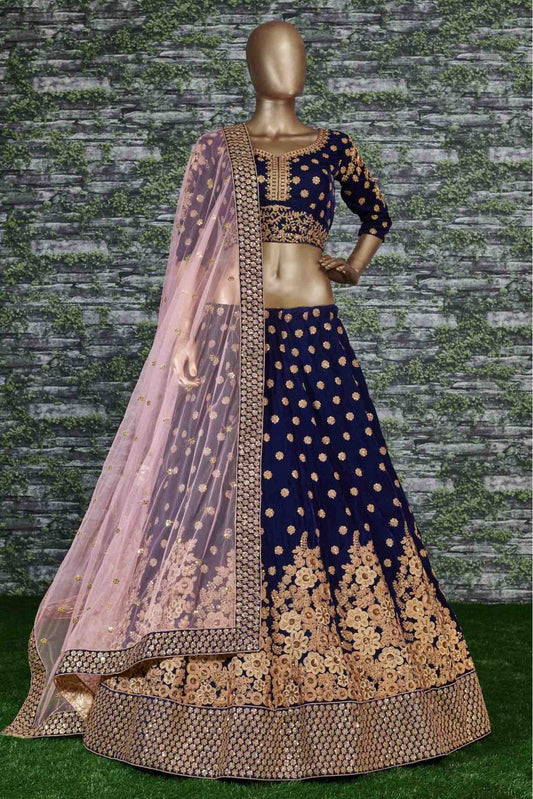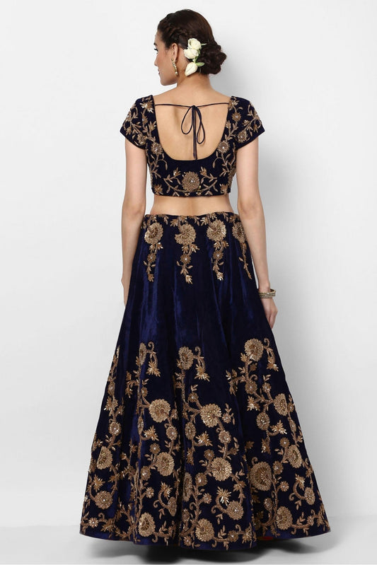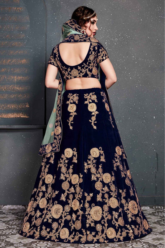 Navy Blue Colour Velvet Lehenga Choli VSLC1010050