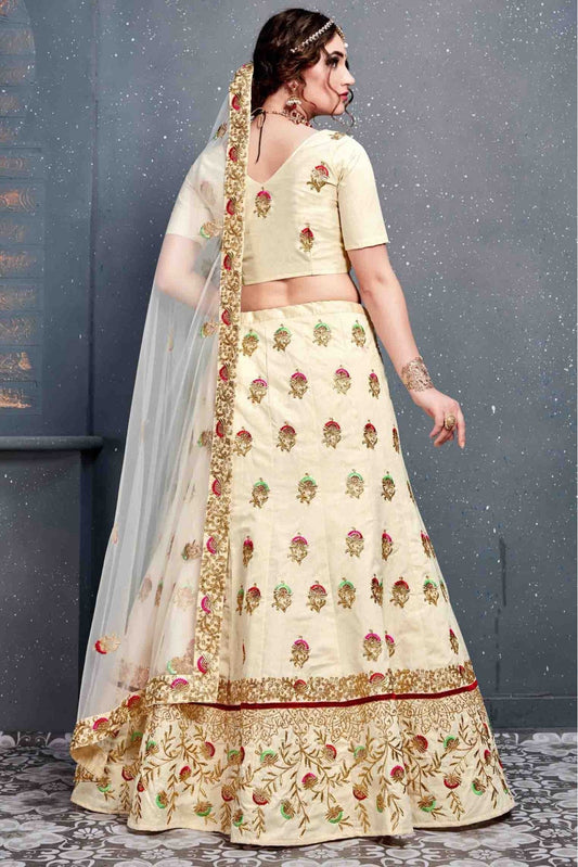 Cream Colour Slub Silk Lehenga Choli VSLC1010037