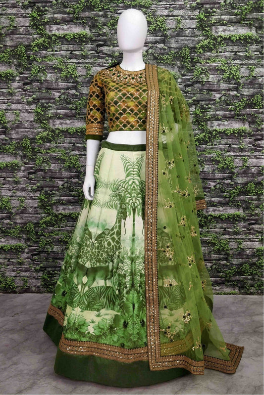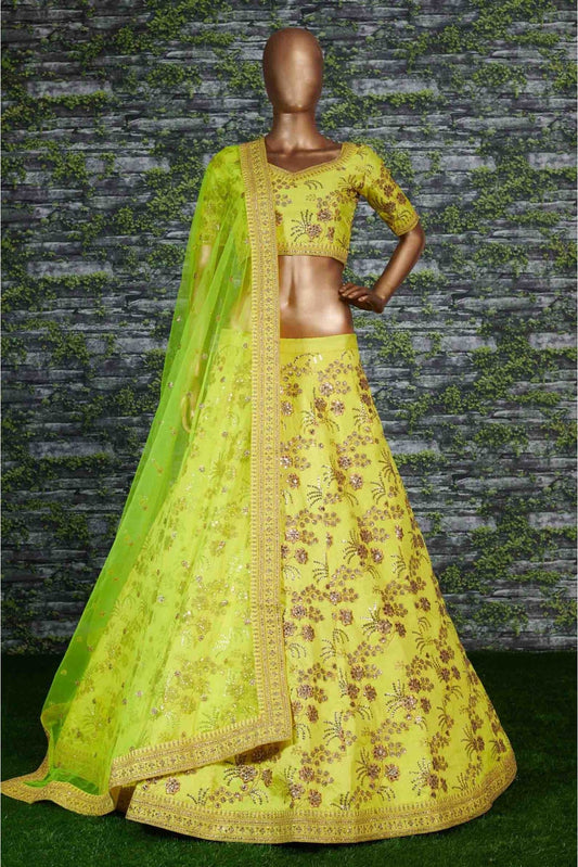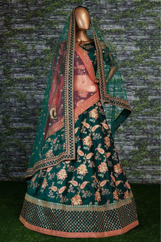 Green Colour Taffeta and Satin Silk Lehenga Choli VSLC1010038