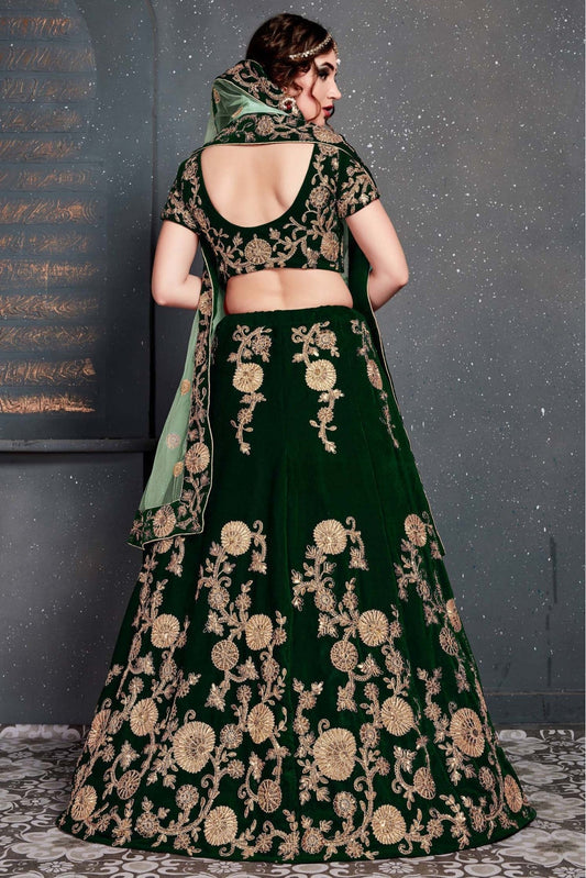 Green Colour Velvet Lehenga Choli VSLC1010031