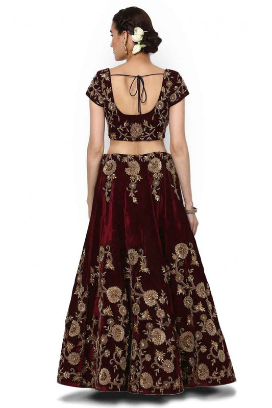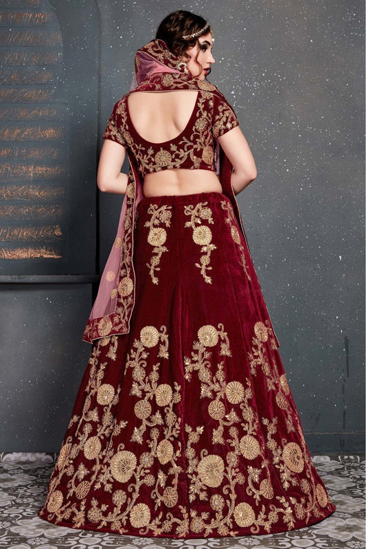 Maroon Colour Velvet Lehenga Choli VSLC1010030