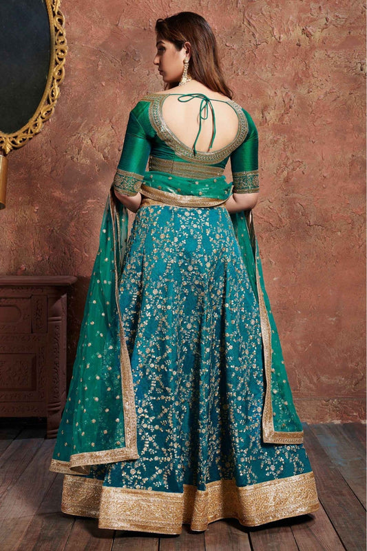 Teal and Green Colour Mulberry Silk Lehenga Choli VSLC1010059