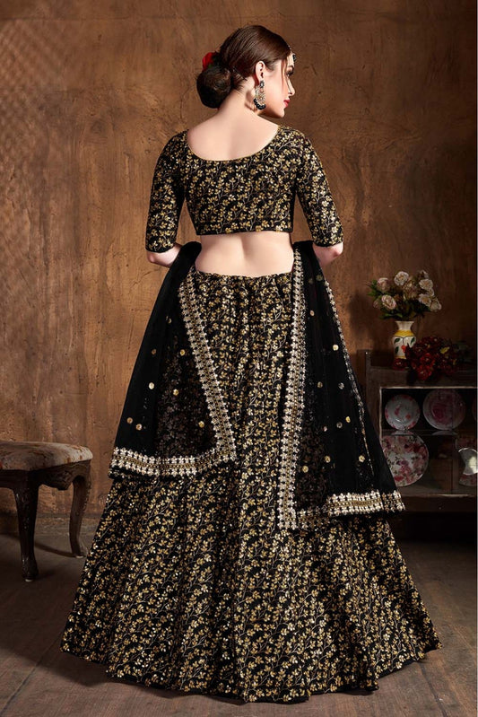 Black Colour Organza Lehenga Choli VSLC1010085