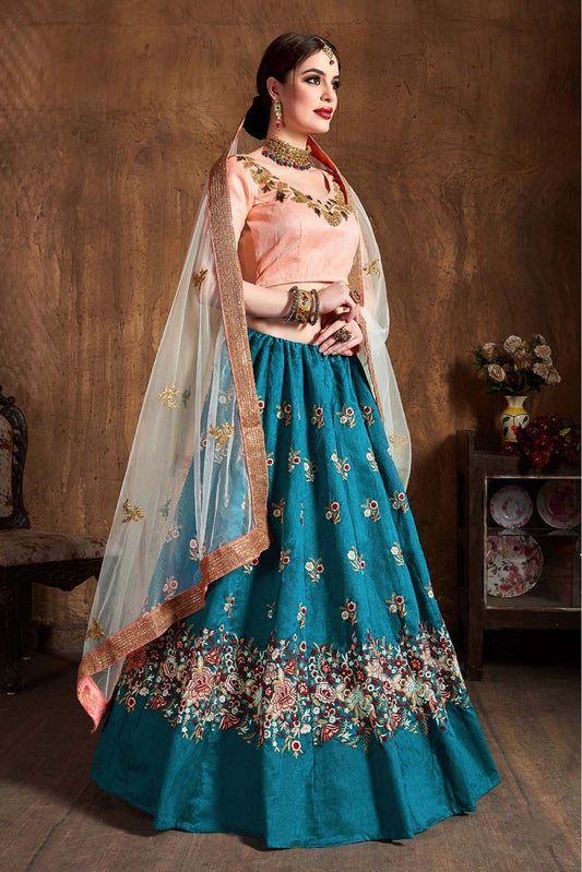 Blue Colour Raw Silk Lehenga Choli VSLC1010066