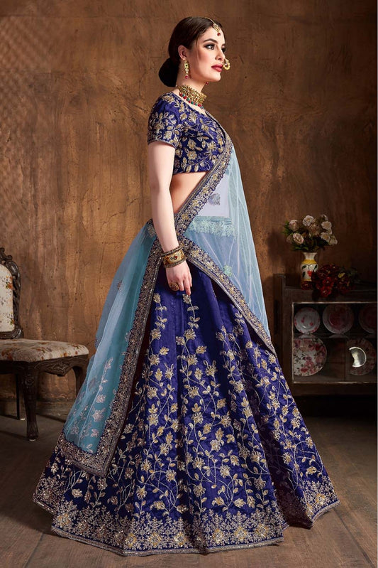 Blue Colour Mulberry Silk Lehenga Choli VSLC1010087