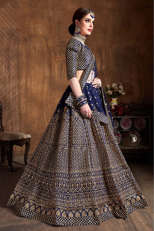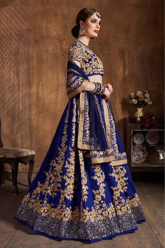 Navy Blue Colour Raw Silk Lehenga Choli VSLC1010070