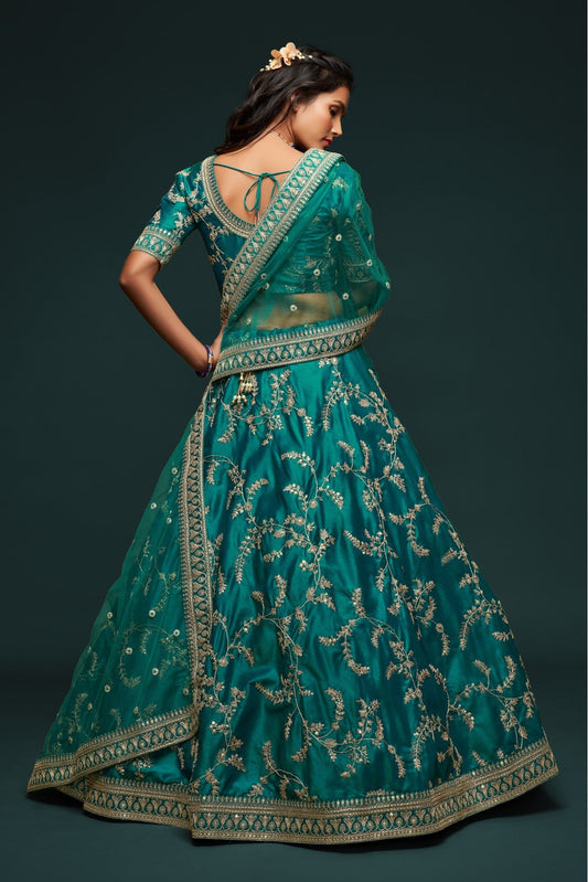 Teal and Blue Colour Art Silk Lehenga Choli VSLC1010109