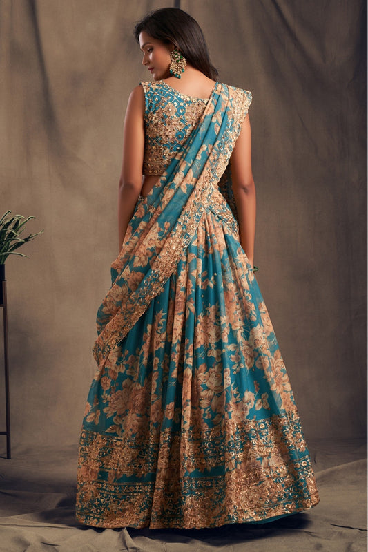 Sky Blue Colour Digital Printed Organza Lehenga Choli VSLC1010113