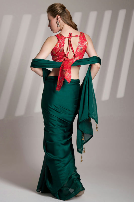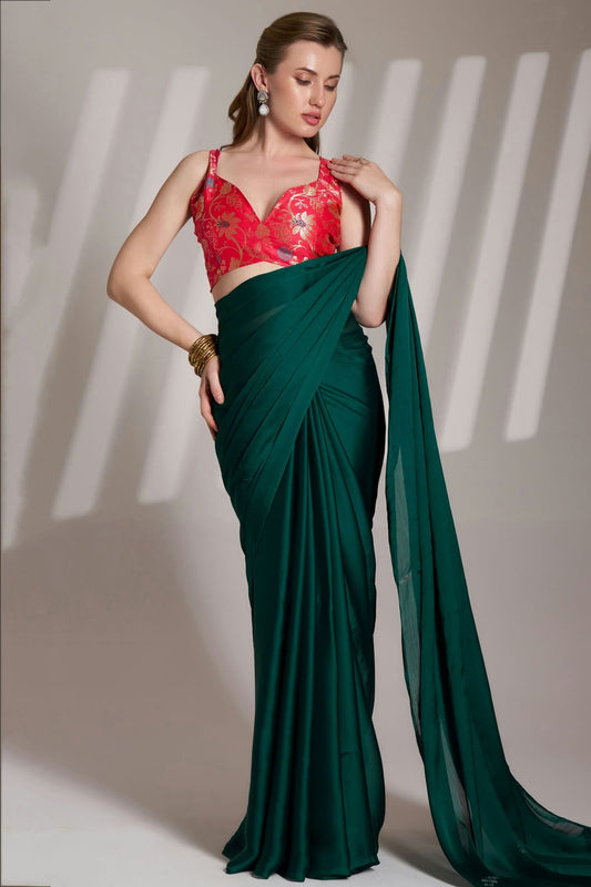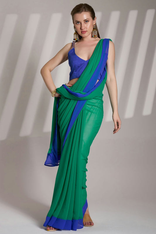 Rama Green Colour Chiffon Saree VSSD1112770