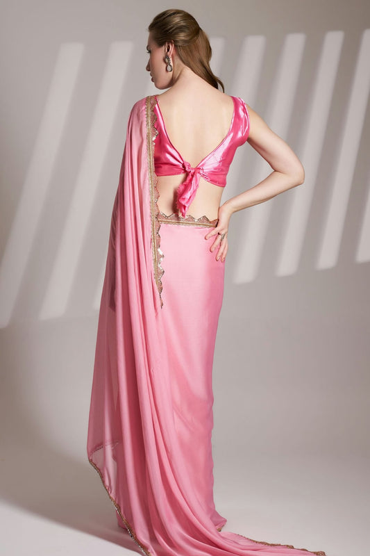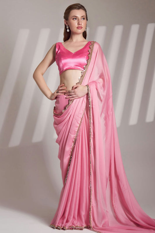Baby Pink Colour Chiffon Saree VSSD1112748