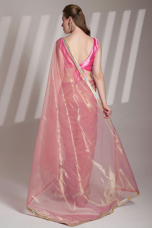 Pink Colour Burberry Organza Saree VSSD1112722