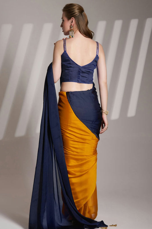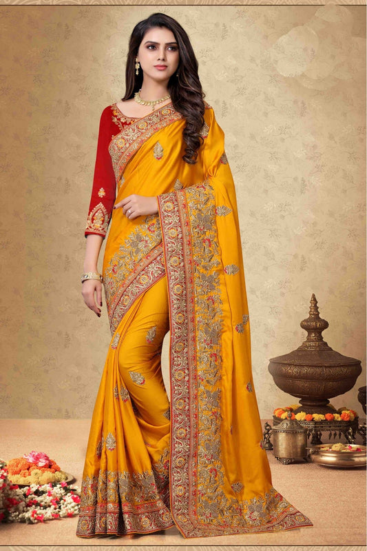 Mustard Colour Satin Georgette Embroidery Saree VSSD1120066