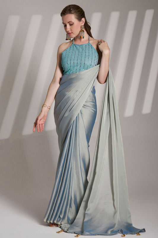Grey Colour Satin Rangoli Saree VSSD1112728
