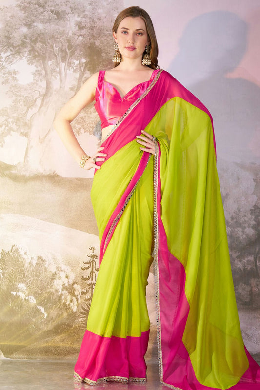 Lime Green Colour Chiffon Saree VSSD1112765