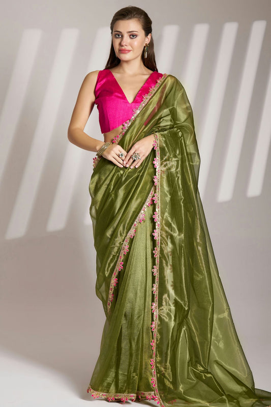 Mehendi Green Colour Twill Net Saree VSSD1112731