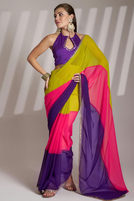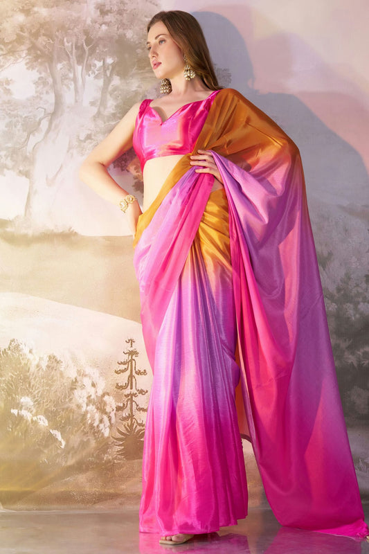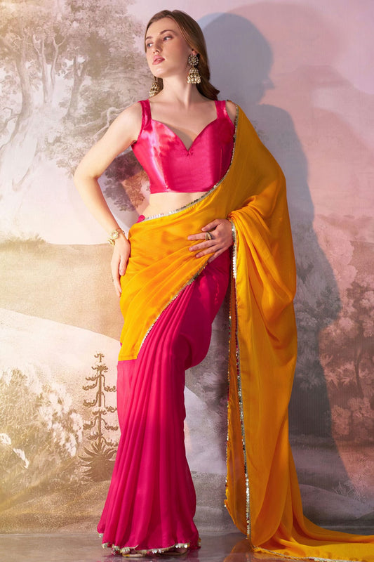 Yellow and Pink Colour Chiffon Saree VSSD1112750