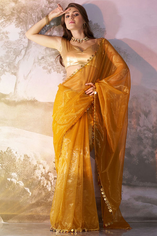 Mustard Colour Twill Net Saree VSSD1112733
