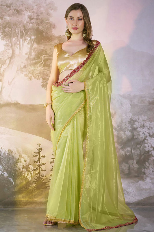 Pista Green Colour Twill Net Saree VSSD1112735