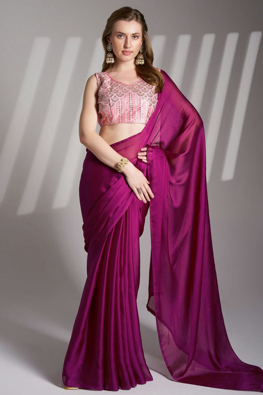 Magenta Colour Shimmer Saree VSSD1112773