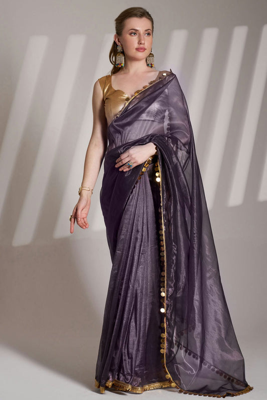 Purple Colour Twill Net Saree VSSD1112740