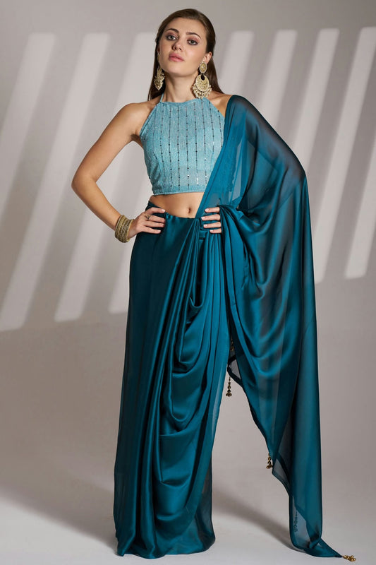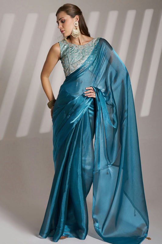 Teal Colour Twill Net Saree VSSD1112739