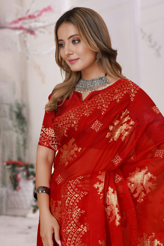 Red Colour Organza Silk Designer Saree VSLC1121455