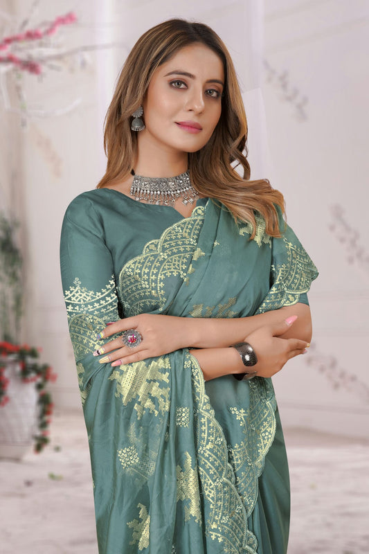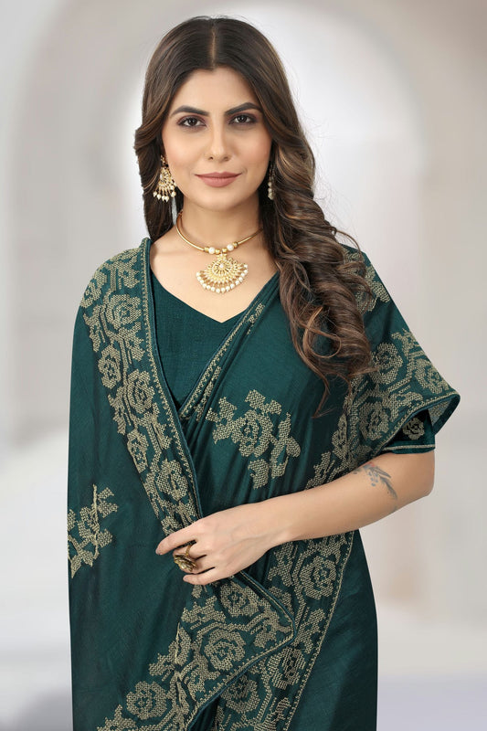 Rama Green Colour Vichitra Silk Designer Saree VSLC1121381