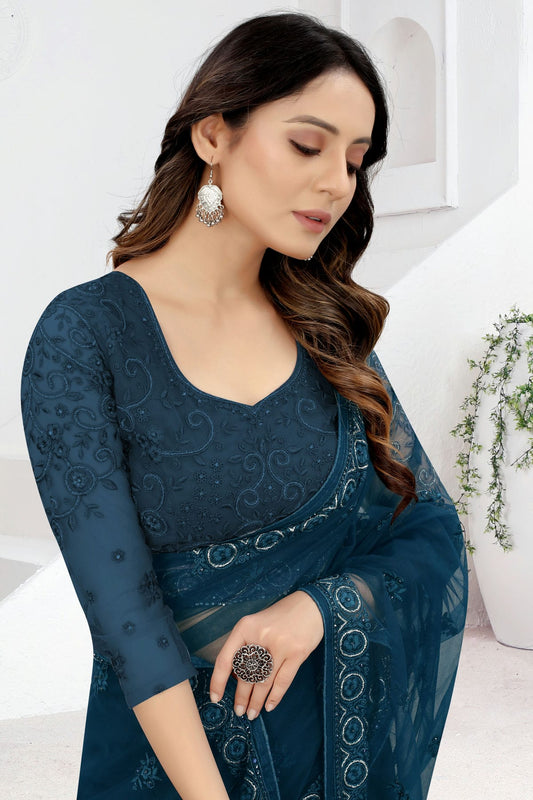 Slate Blue Colour Organza Silk Designer Saree VSLC1121456