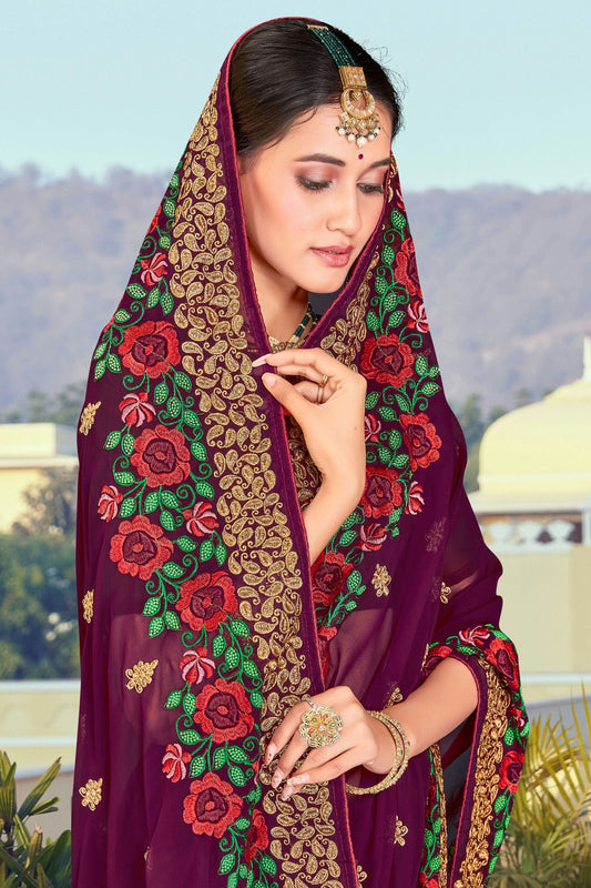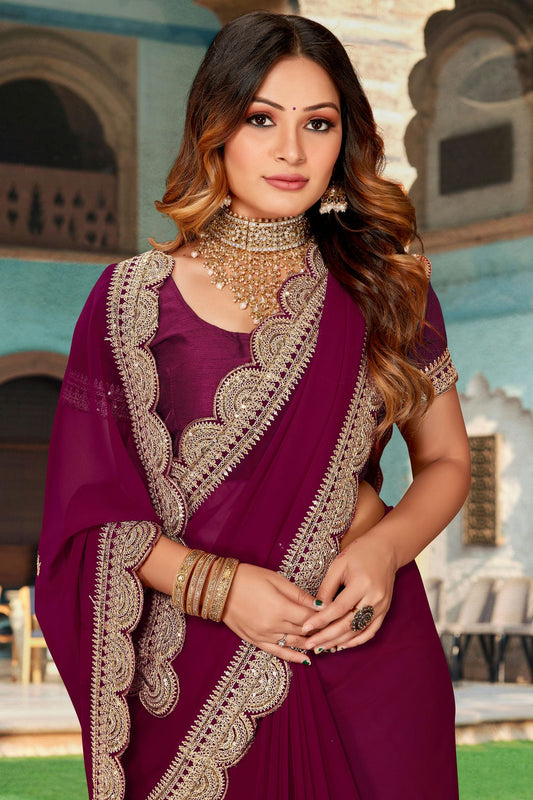 Maroon Colour Georgette Designer Saree VSLC1121374