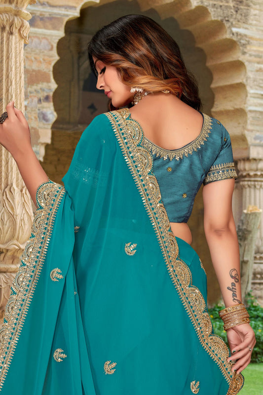 Rama Green Colour Georgette Designer Saree VSLC1121422