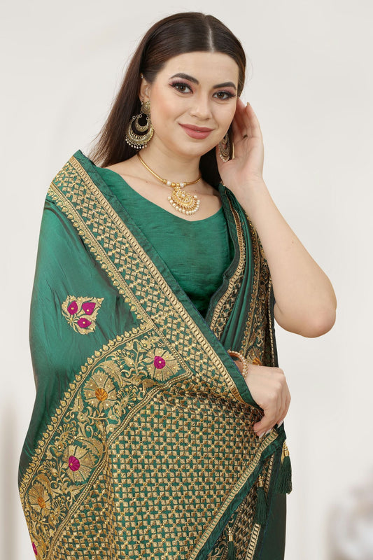 Rama Green Colour Satin Silk Designer Saree VSLC1121311