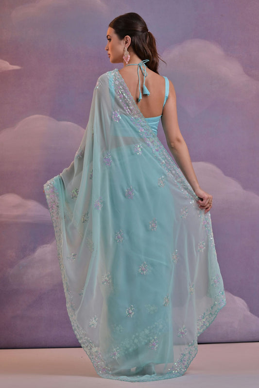 Sky Blue Colour Georgette Saree VSSD1110516
