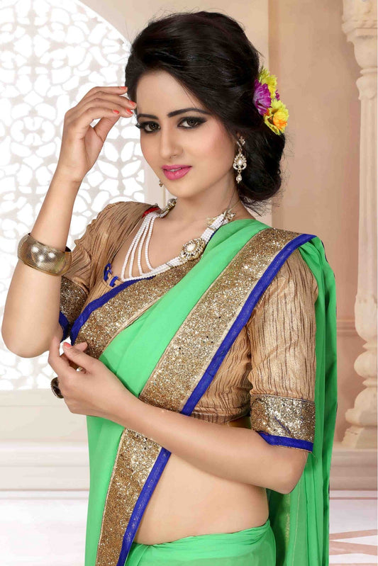 Green Colour Georgette Lace Work Saree VSSD1120561