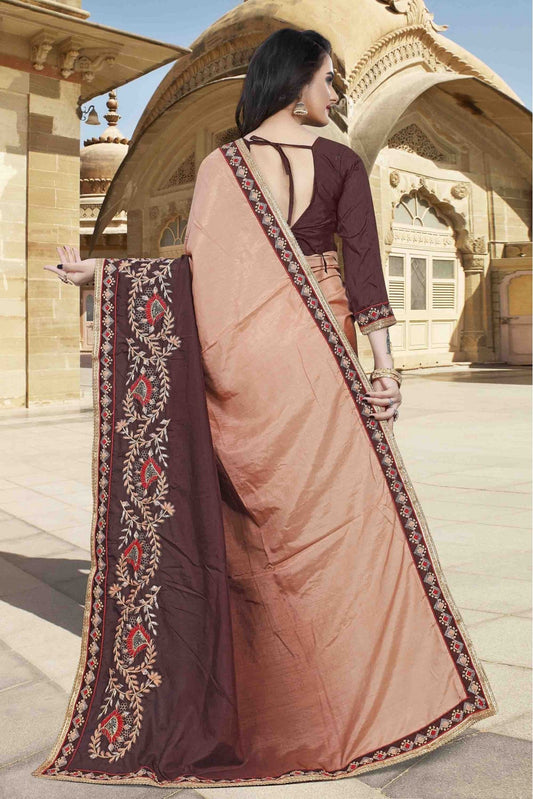 Peach and Brown Colour Dola Silk Designer Saree VSSD1120550