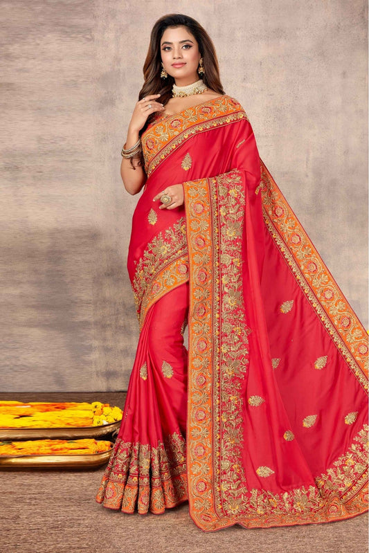 Red Colour Pure Satin Swarovski Work Saree VSSD1120650