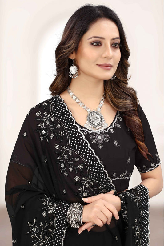 Black Colour Georgette Embroidery Saree VSSD1120896
