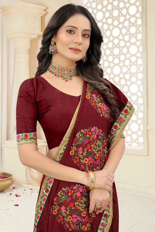 Maroon Colour Vichitra Silk Embroidery Saree VSSD1120966