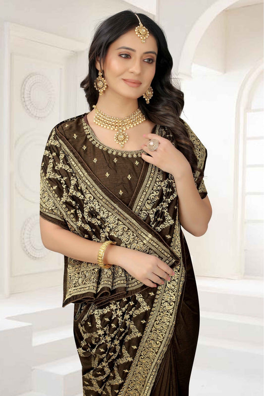 Black Colour Vichitra Silk Embroidery Saree VSSD1120958