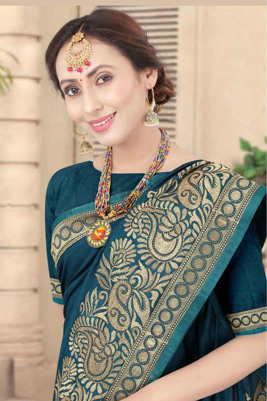 Teal Colour Vichitra Silk Embroidery Saree VSSD1120950