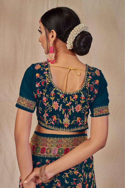 Teal and Blue Colour Georgette Embroidery Saree VSSD1120902