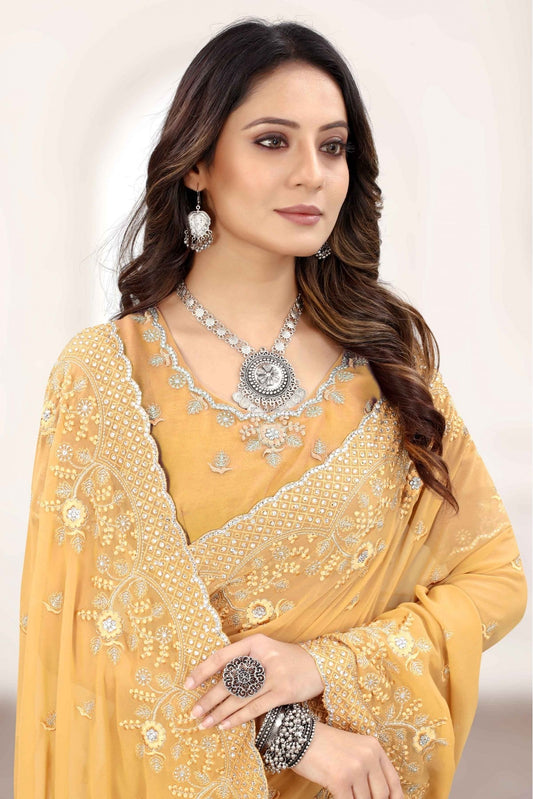 Mustard Colour Georgette Embroidery Saree VSSD1120899