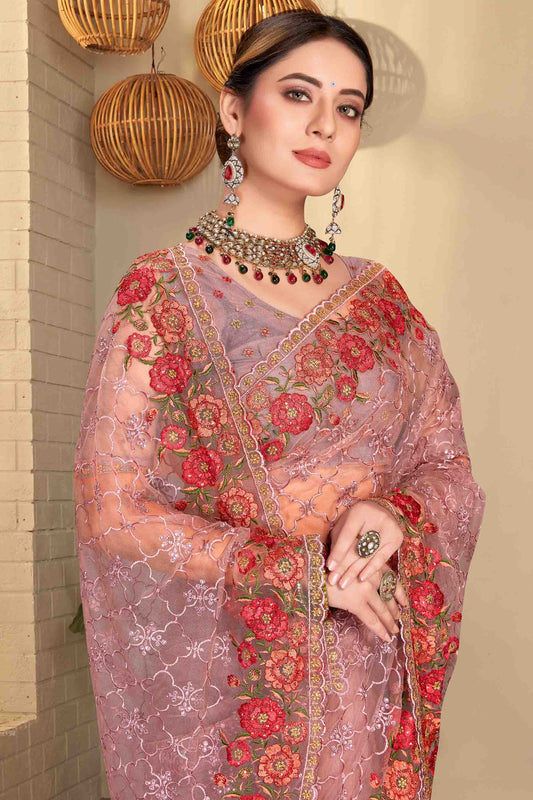 Dusty Pink Colour Net Designer Saree VSSD1090559