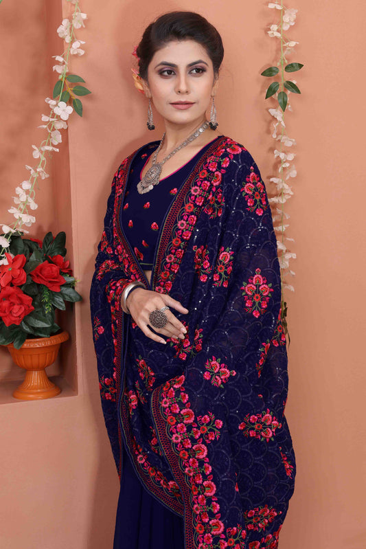 Navy Blue Colour Georgette Designer Saree VSSD1090533