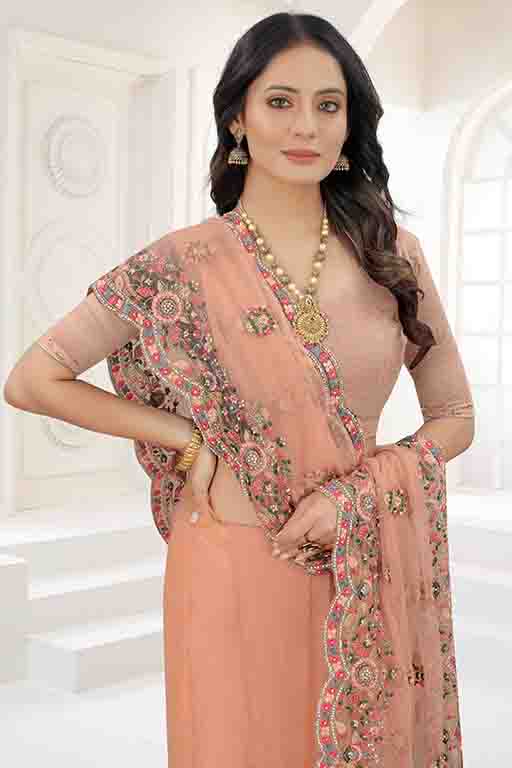 Dusty Peach Colour Net Designer Saree VSSD1090586