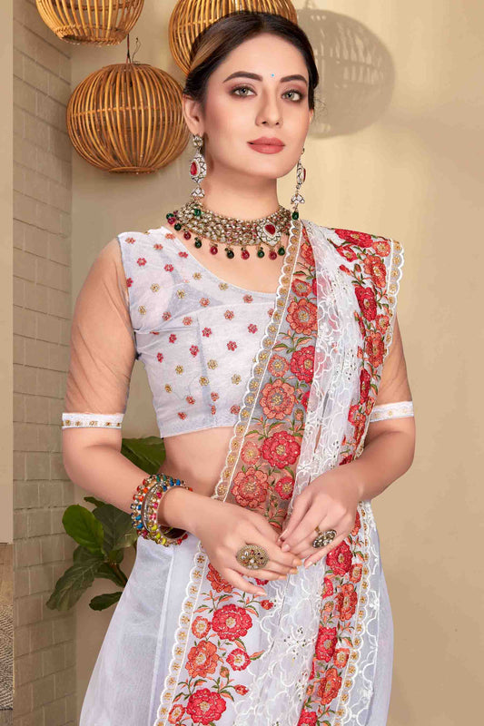 Sky Blue Colour Net Designer Saree VSSD1090520