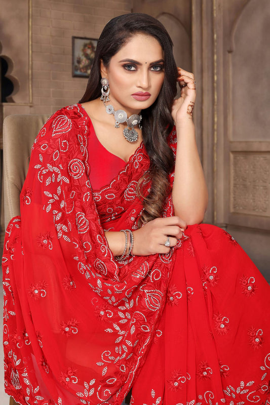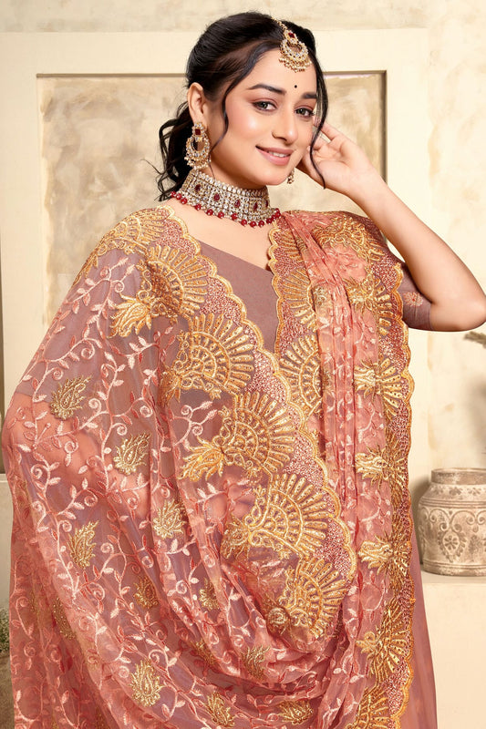 Dusty Peach Colour Georgette Saree VSSD1090960