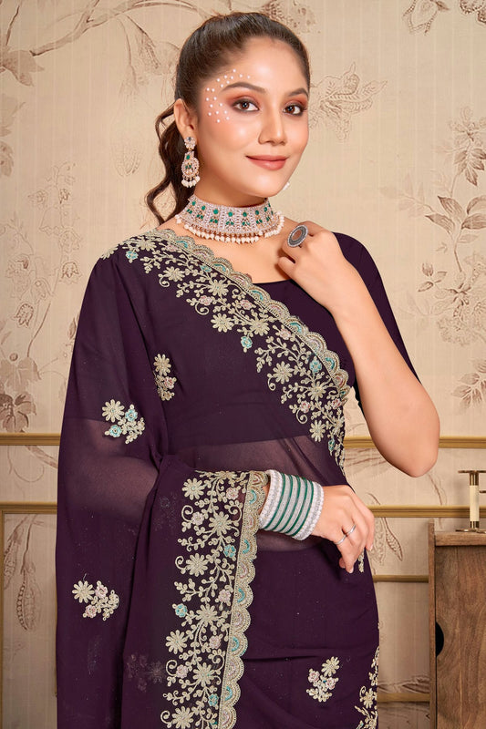 Dusty Grey Colour Georgette Saree VSSD1090961